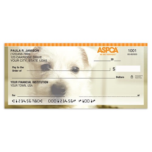 What’s more, when you order dog-themed checks that are branded with the ASPCA® logo, you’re also supporting the country’s leading voice for vulnerable and victimized animals.