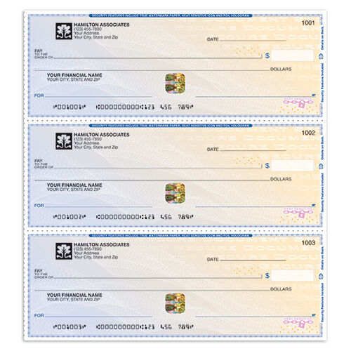 High-security checks include over 30 security features from visible and invisible fluorescent fibers to heat-sensitive ink, holograms and watermarks to help deter check fraud.