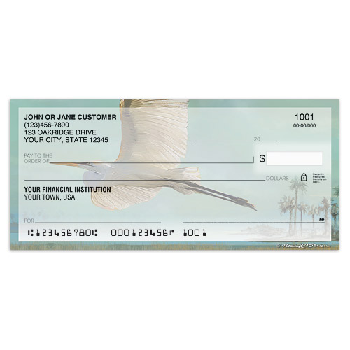 A relaxing day at the coast is just a flight away with these Shore Birds personal checks, from artist Patrick Reid O’Brien. These checks feature beautiful watercolor images of coastal birds. Matching address labels are also available. Order your Shore Birds checks today!
